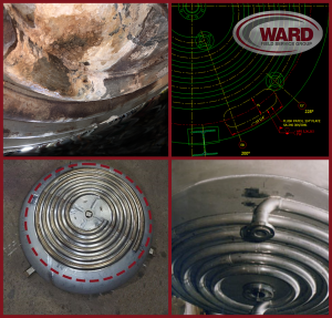 Last month, we talked about how some equipment just can’t be revived. Recently, Ward was asked to help a good customer with a leaking half pipe on a pressure vessel head. The initial attempt was just to perform a local weld excavation and re-weld, however dye penetrant testing after welding showed some cracking issues with the half pipe base metal. We determined that we should try to remove a section of half pipe and graft in a new section. We rolled and split a section of piping, removed the old section, cleaned up the base metal and, just to be on the safe side, we performed another LPT – this time on the head base metal under the original half pipe. Unfortunately, stress corrosion cracking had set in and a whole new issue presented itself. We tried grinding out the cracks and re-welding, however the cracking was simply too deep, so we had to abandon the half pipe repair. Also unfortunate was the fact that compromised base metal didn’t just condemn the half pipe jacket, but the vessel itself, due to head minimum thickness requirements. We attempted to grind the base metal cracks out while monitoring thickness via ultrasonic testing, but the cracking was just too deep. Although not yet a foregone conclusion, there still may be a path forward for this vessel – the head will be checked via phased array UT and, if the areas outside of the central section that had half pipe is in good condition, we may be able to cut out and replace the center/dished section of the head with new half pipe. Tune in next month for a brief update if there has been progress and wish us (and our customer) luck! |